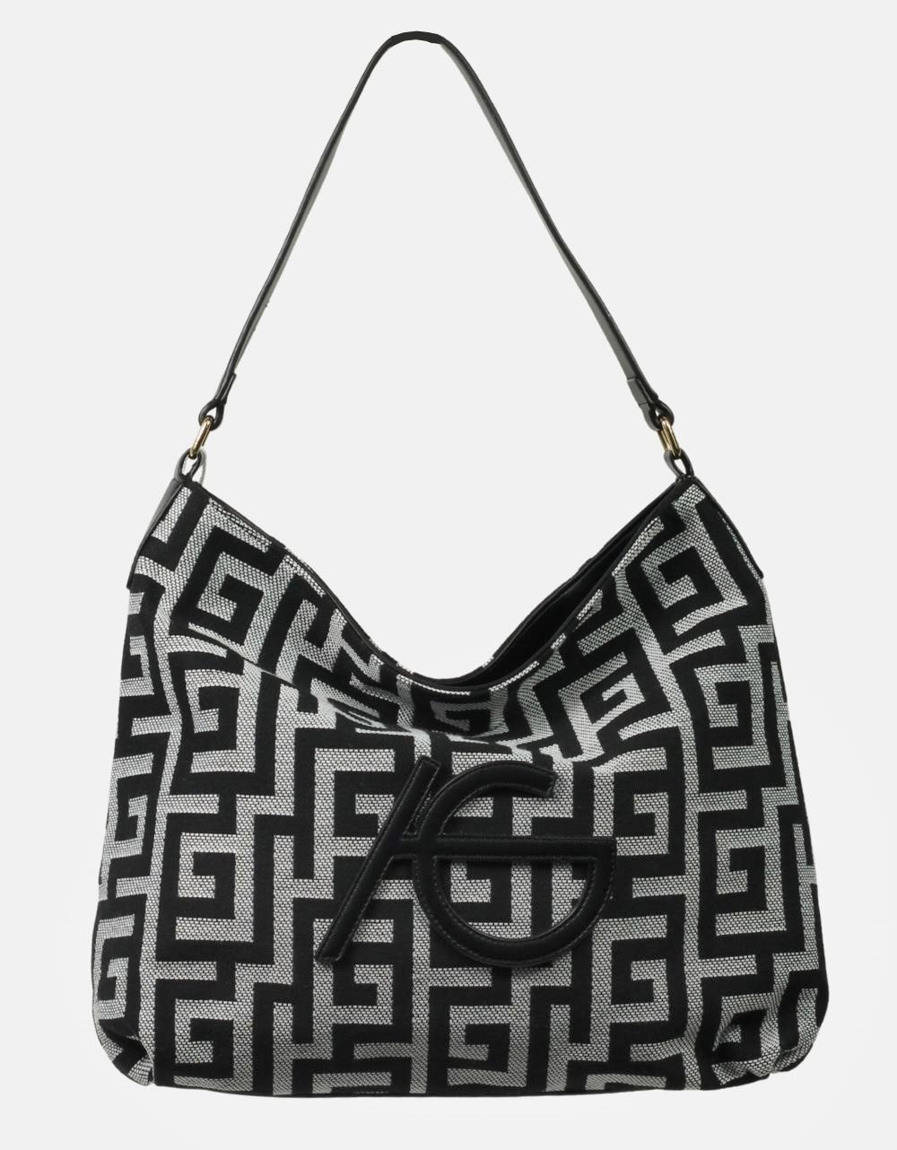Χειροποίητη τσάντα ώμου με μοτίβο μαιάνδρου, της εταιρείας ARI GORGIO . Διαθέτει δύο εσωτερικά χωρίσματα , κλείνει με φερμουάρ και είναι ευρύχωρη να φορεθεί όλη τη διάρκεια της ημέρας.