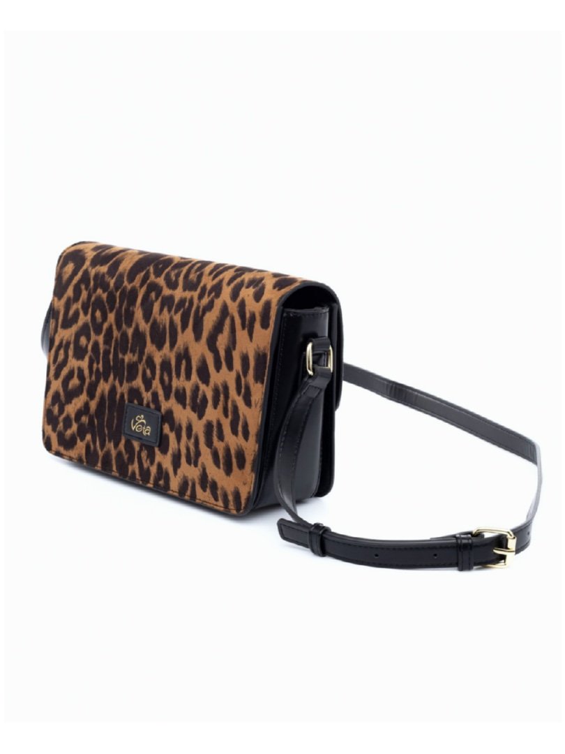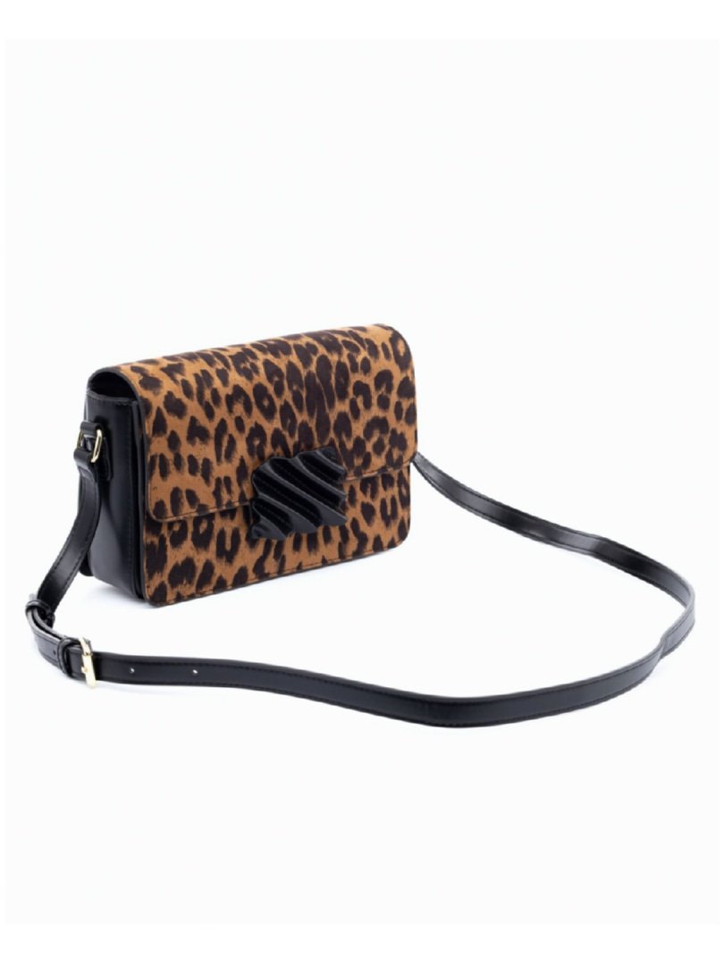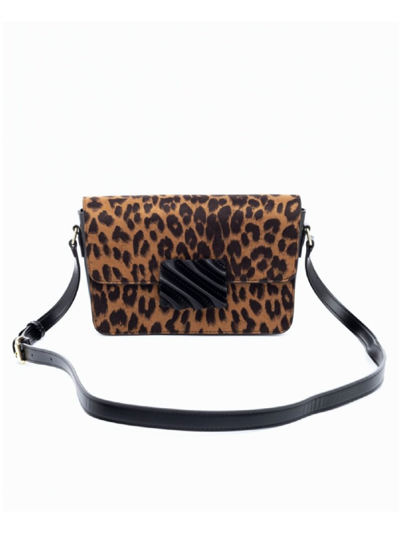 Τσάντα χιαστί σουέντ λεοπάρ με μαύρες λεπτομέρειες και 3 χώρους.