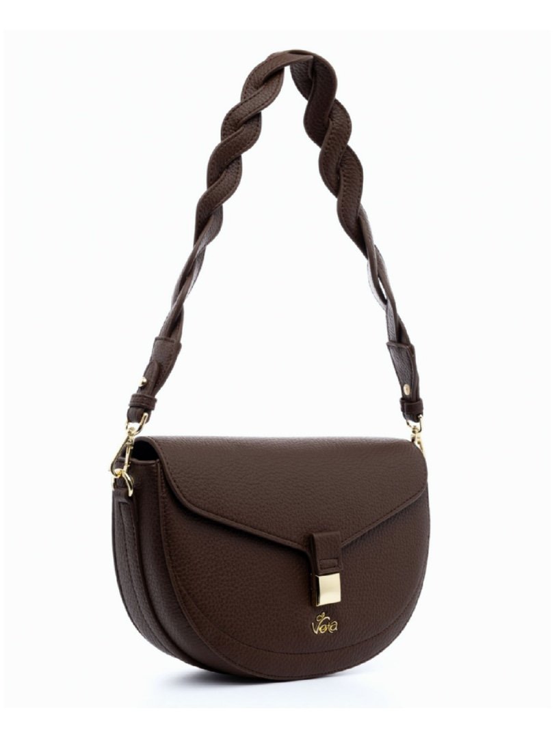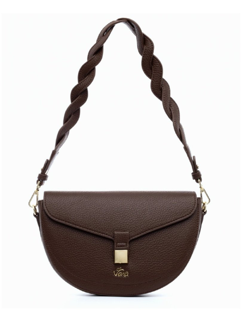 Τσάντα ώμου καφέ με λουράκι πλεξούδα.