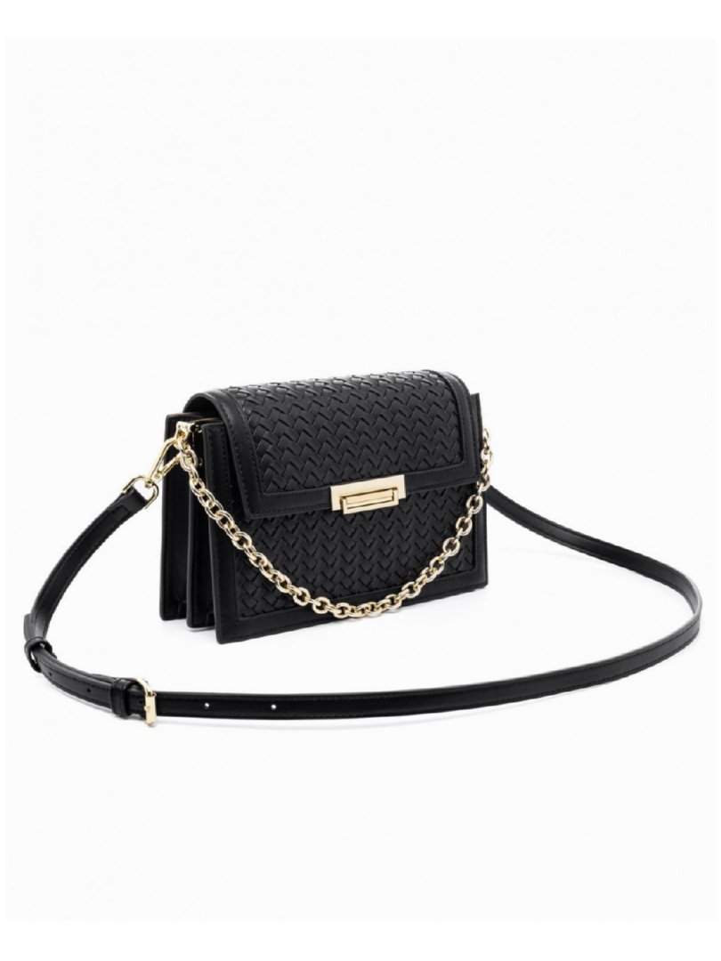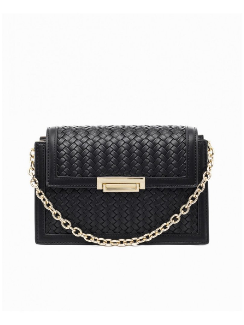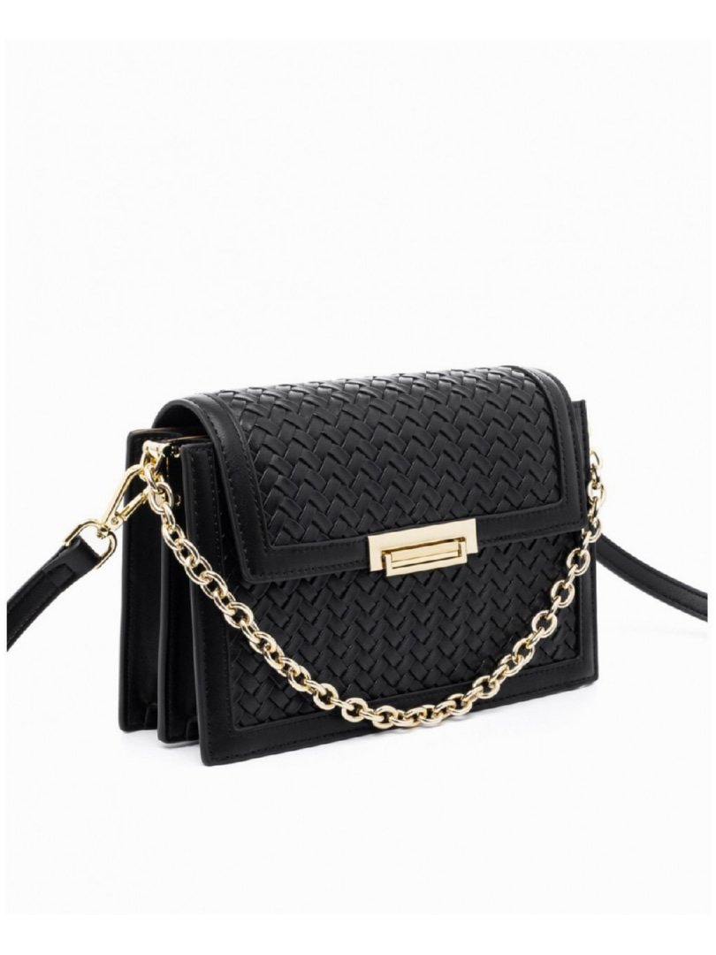 Τσάντα χειρός και χιαστί, μαύρη με ανάγλυφο μοτίβο πλεξούδας και αλυσίδα.