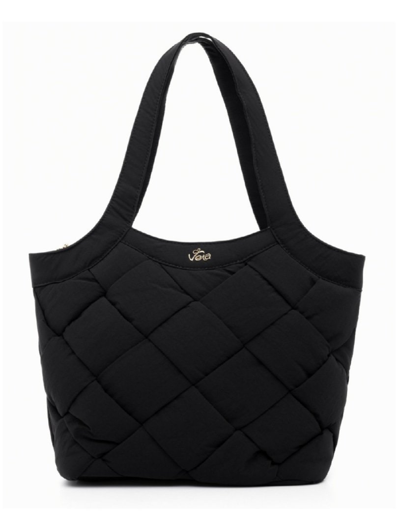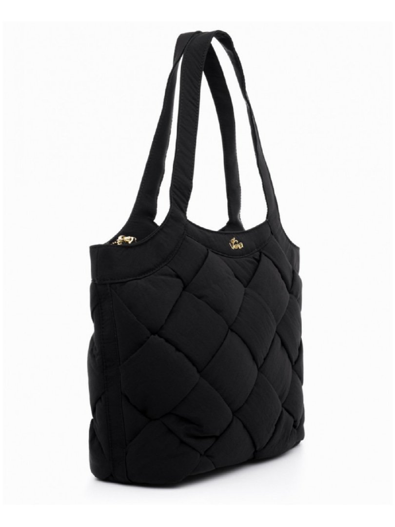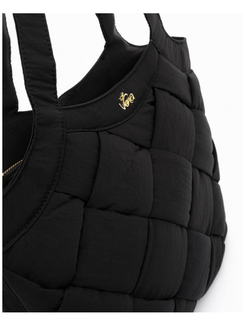Μαύρη τσάντα ώμου puffer με χειροποίητη πλέξη.