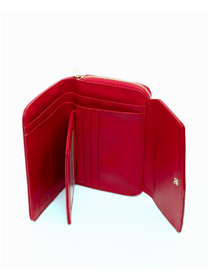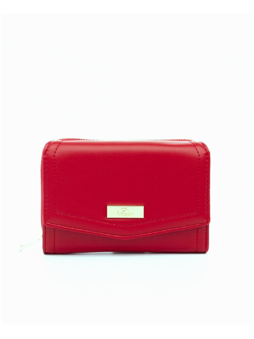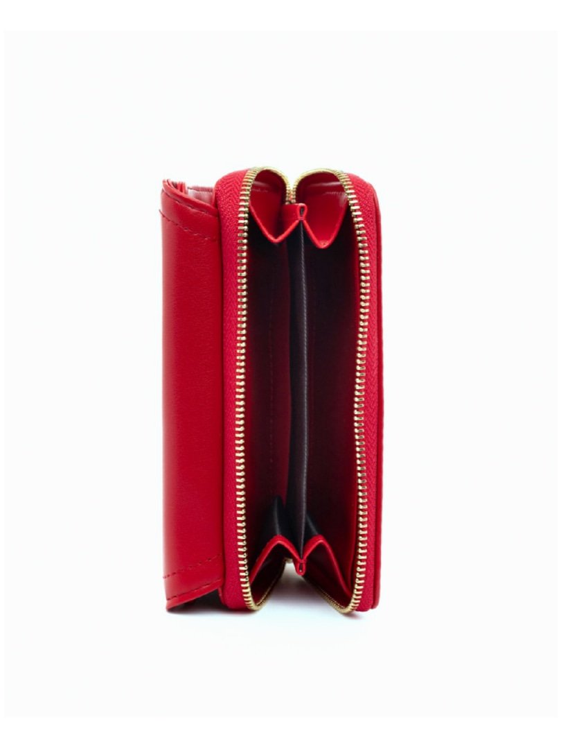 Πορτοφόλι κόκκινο με καπάκι και φερμουάρ.