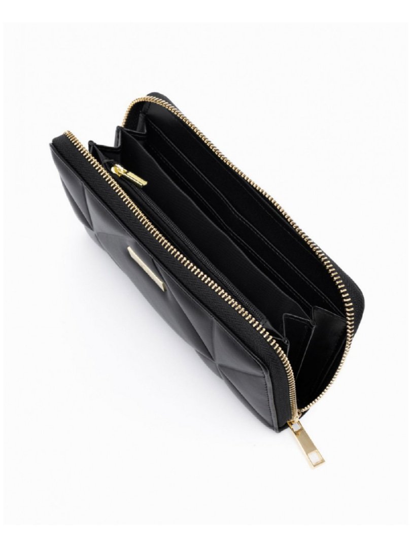 Πορτοφόλι μαύρο καπιτονέ χωρίς ραφές με φερμουάρ και εξωτερική τσέπη στο πίσω μέρος.
