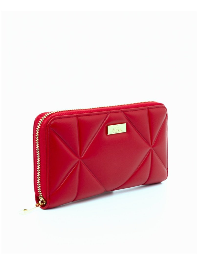 Πορτοφόλι κόκκινο καπιτονέ χωρίς ραφές με φερμουάρ και εξωτερική τσέπη στο πίσω μέρος.